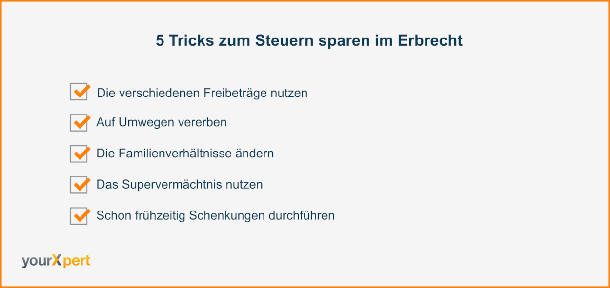 Allgemein gibt es 5 Tricks, um die Erbschaftssteuer zu umgehen oder zu verringern: